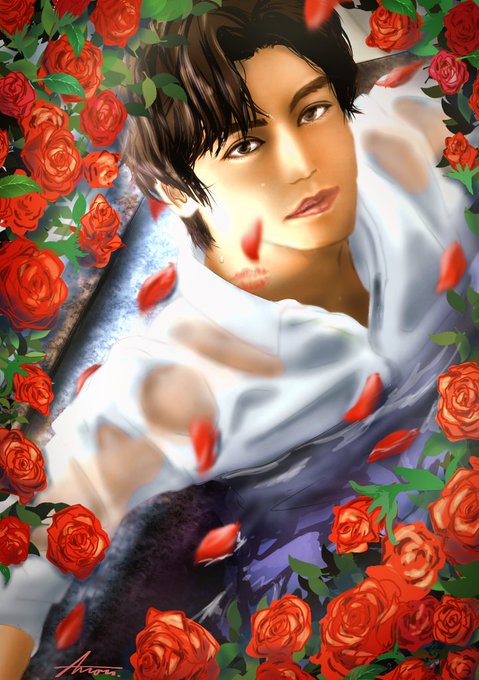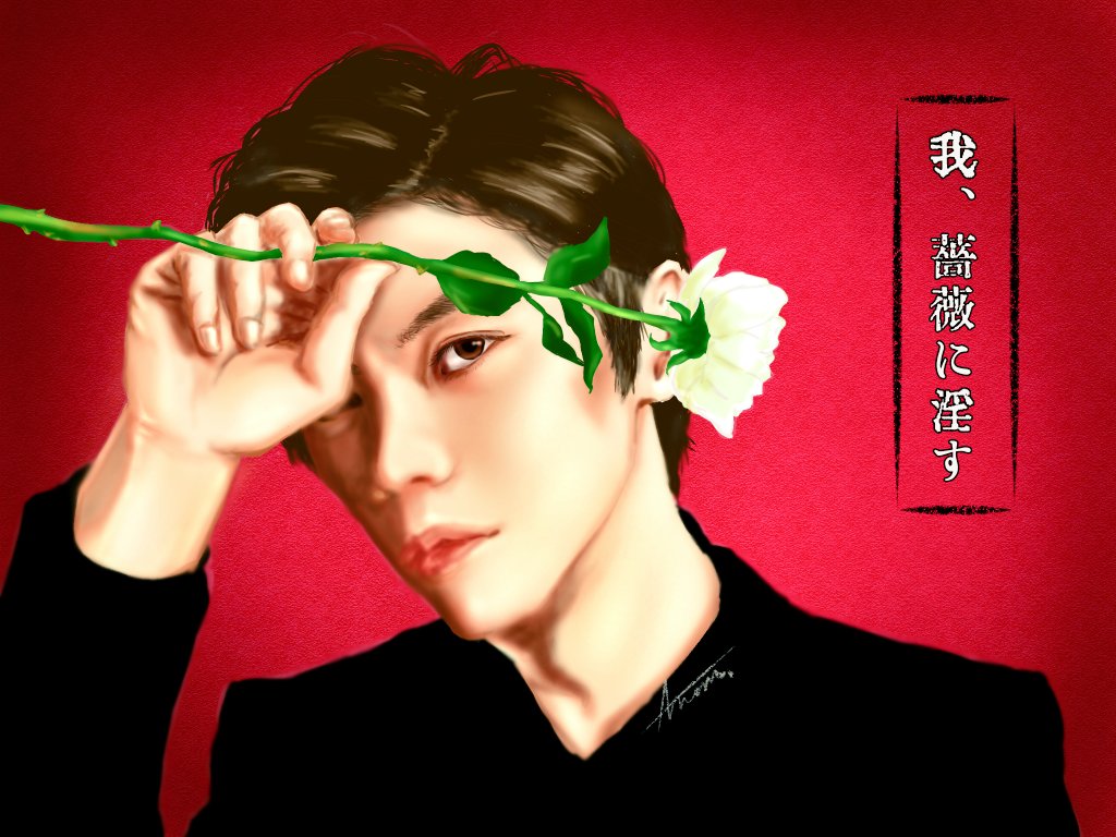 我、薔薇に淫す🌹 MATSURIさんの案を戴いて過去絵でリメイク😏薔薇🌹描き疲れたw