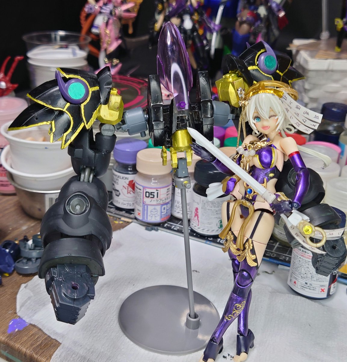 おはよう゚+.ヽ(≧▽≦)ノ.+゚ございます🧸 #メガミデバイス #ダイバーアヤメ #王様戦隊キングオージャー 色々作ろう ガシャポンのキングオージャー中々良いサイズね ミニプラにも似合いそう
