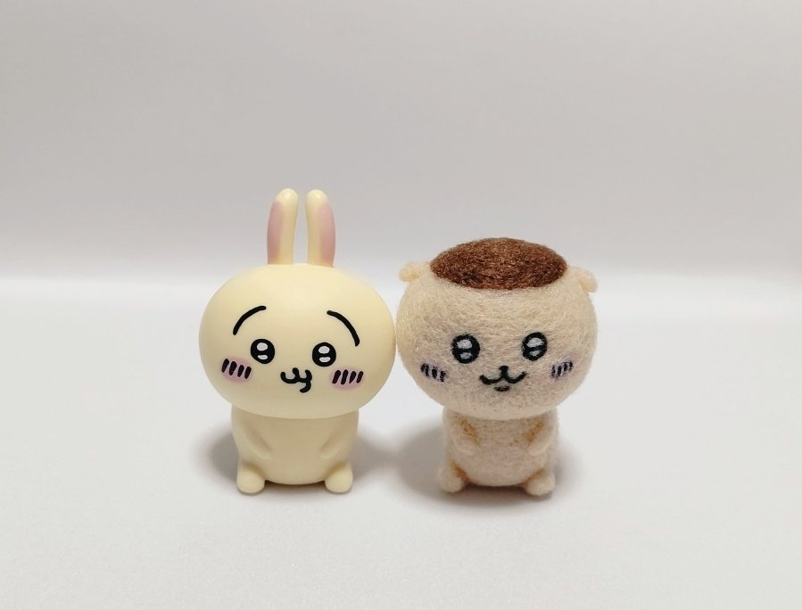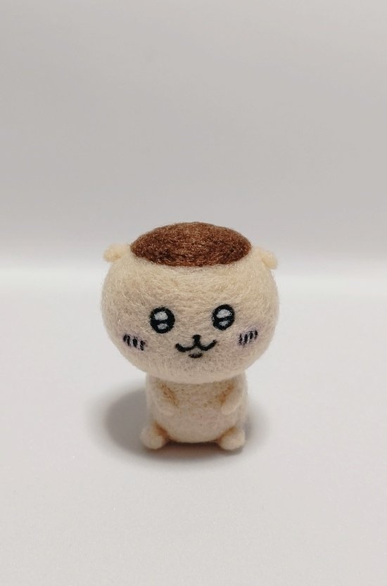 ハーッ…の顔も好きだけど、きゅるきゅるな顔のフィギュアが少ないので作りました🍶 大きさは100均のフィギュアくらい✨ 栗まんじゅうさんもラインナップされて欲しいな☺️ #羊毛フェルト #ちいかわファンアート