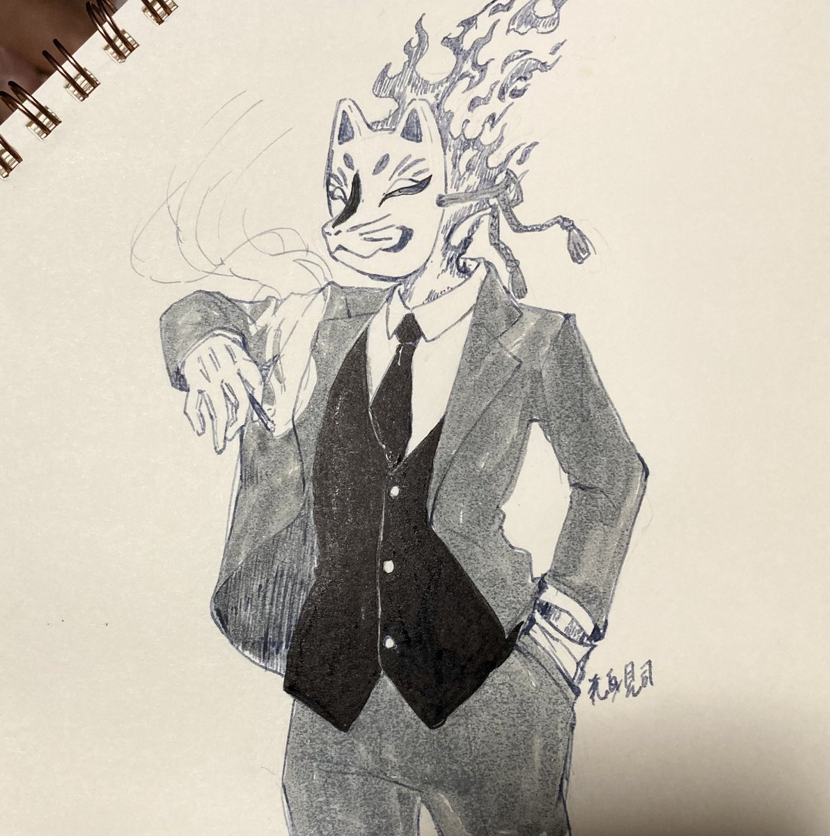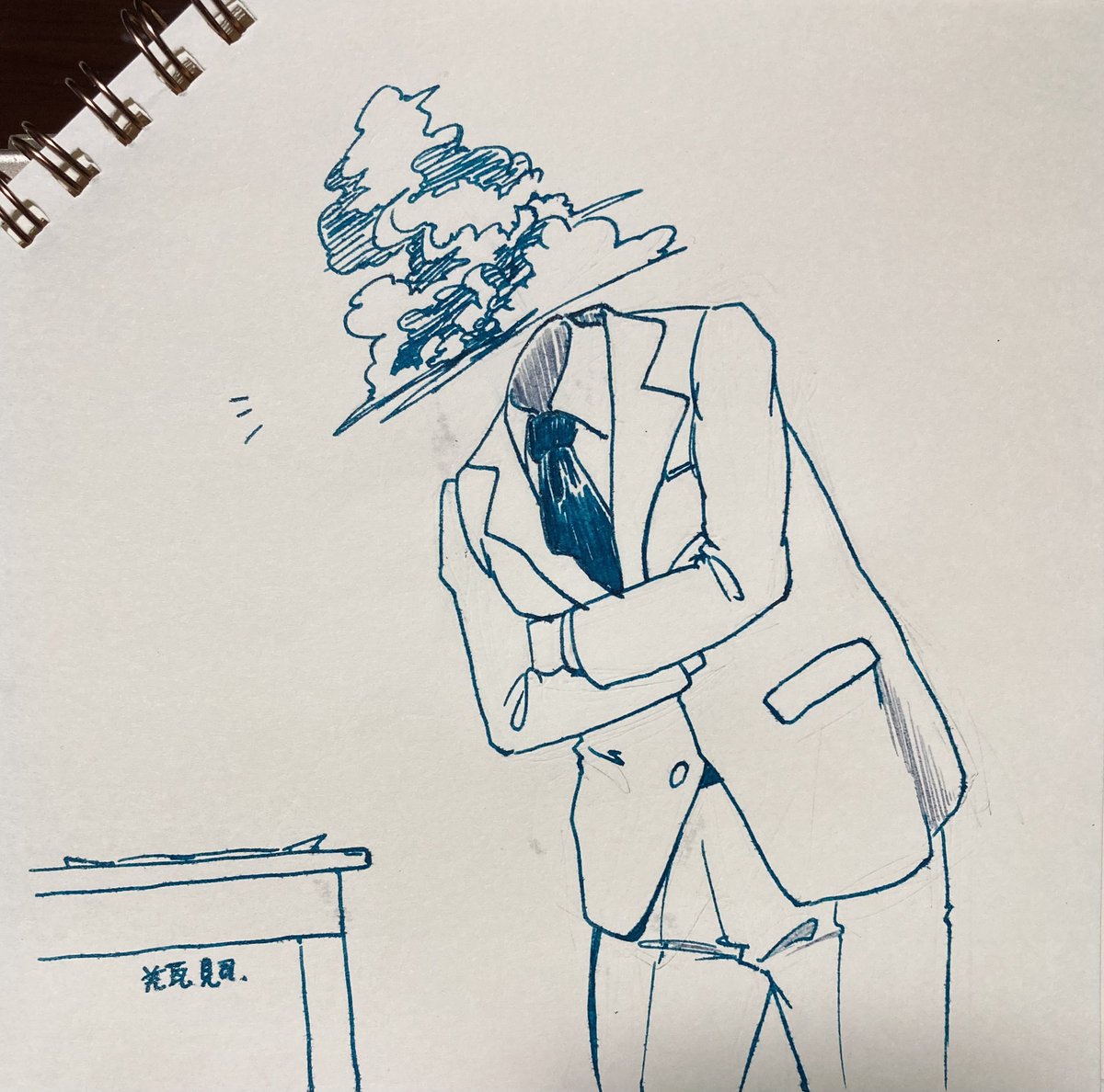 #inktober2022 #Inktober 5日目 何かメモおいてある…何これ…なうちの子。 ポーズはまこさんスーツ資料様から
