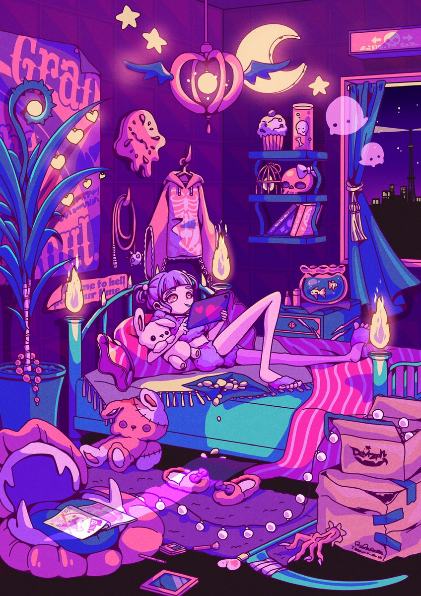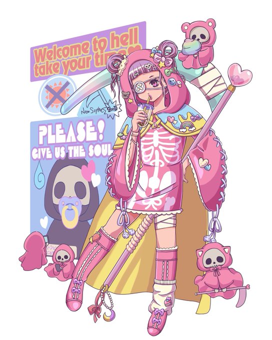 #絵柄好みって人にフォローされたい #絵描きさんと繋がりたい #冬の創作クラスタフォロー祭り おもちゃ箱をびっくり返したような、ごちゃごちゃクオリティのガールズイラストを描いてます🧸🤖👻