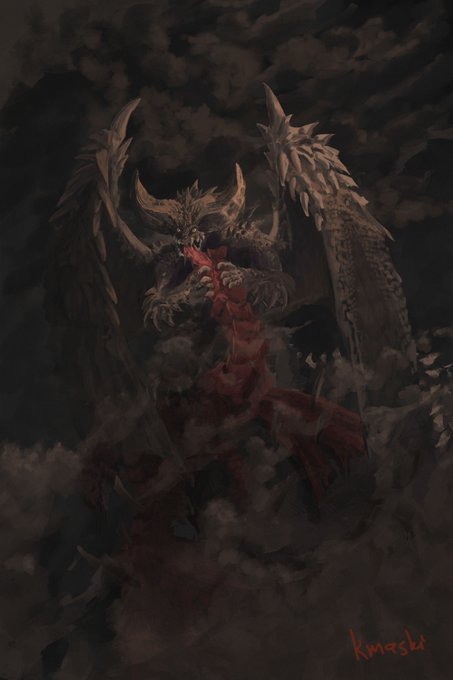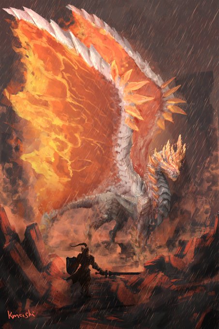 "The Dragon King had wings made out of fire, a crown shining gold and its roar could be heard from -" "Yea sure grandpa, tell us about the giant fortress bug again" Ruling Guanzorumu from #MonsterHunter Frontier.