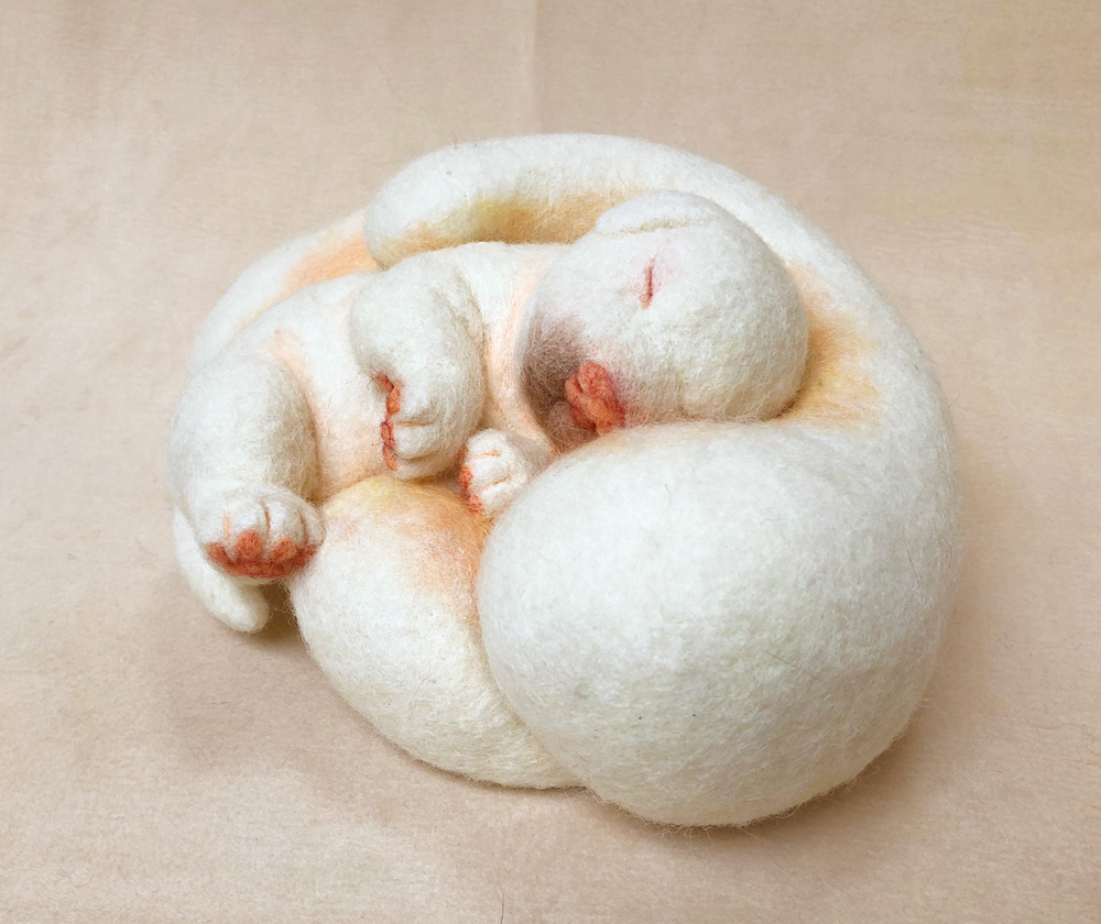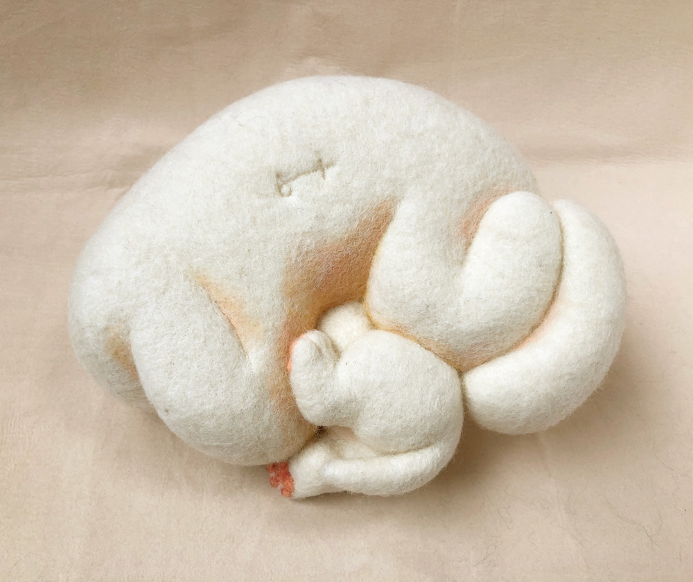 「 ぬくもりのかたち2 」 愛犬と寄り添って寝ている時に感じた温もりをもとに制作した作品。触れているところからじんわりと伝わってくる温かさと重さの感覚を思い浮かべながら作りました。 #かわさきみなみ展ぬくもりのかたち