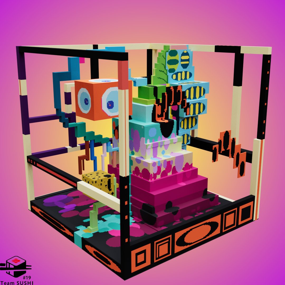 [Voxelwork]① NIGINIGI Moon Object - CF Divergent Art #TSBJP #TheSandbox #VoxelArt @TheSandboxJP @TheSandboxGame 今月はもう本当に好きに作らせて頂いてます..! もともと2Dのビジュアルアーティストなので、平面の作品を元に創作しました。途中でテンションあがってだいぶ変化しましたw🐯🎨