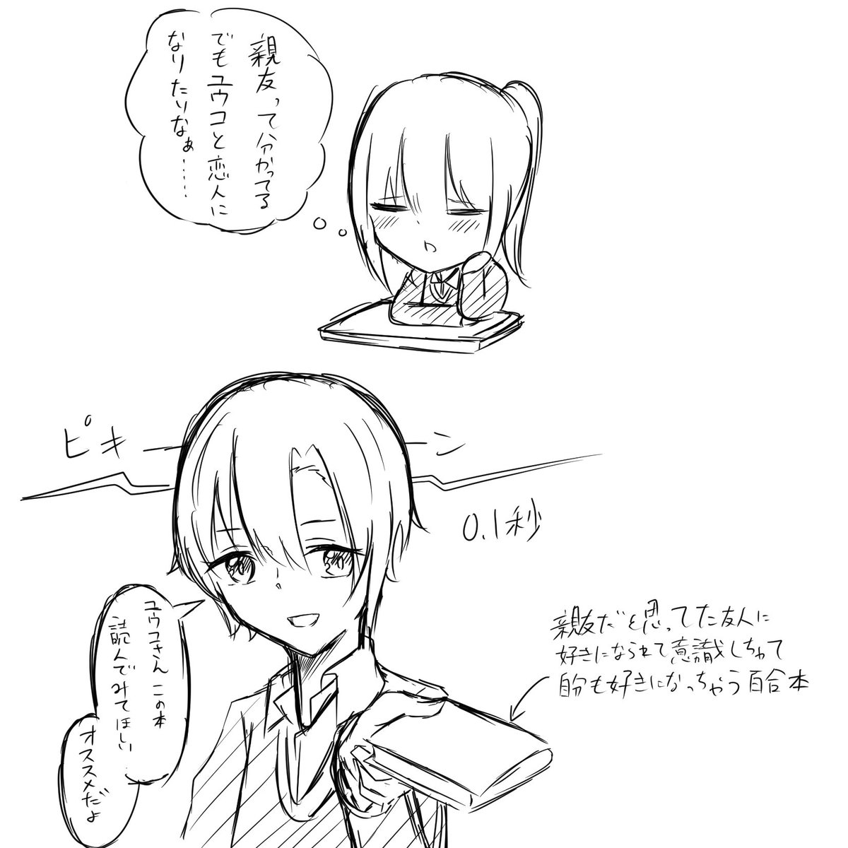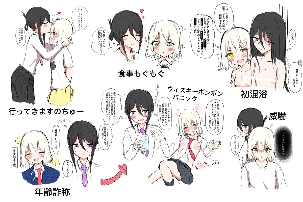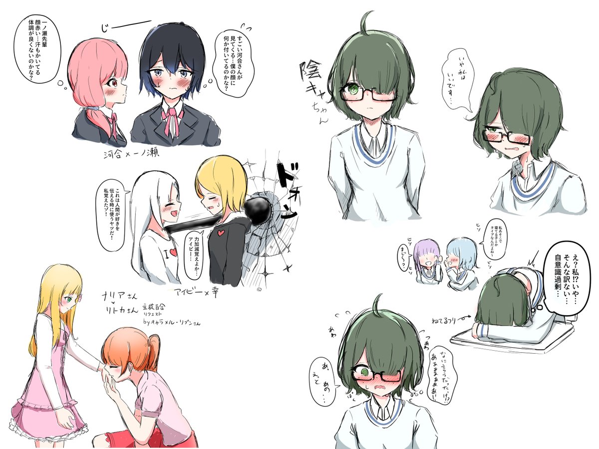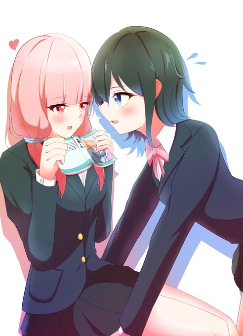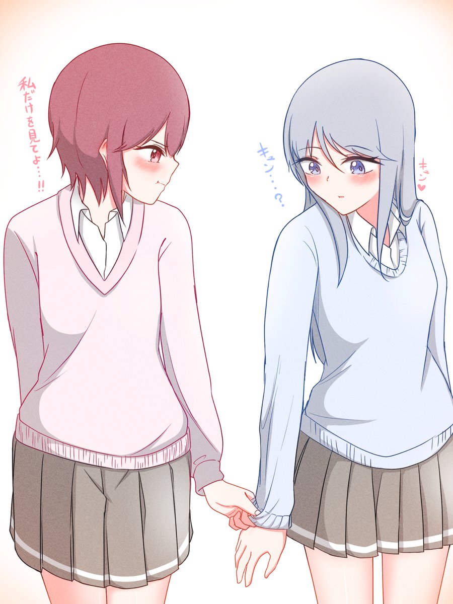左:「自分だけを見て欲しい子と恋無自覚な子の両片想い」 と 右:キャラメル・リプンさん家のジスさんとレーナさん を描かせていただきました!(*´꒳`*) #百合 twitter.com/LENA07yuri/sta…