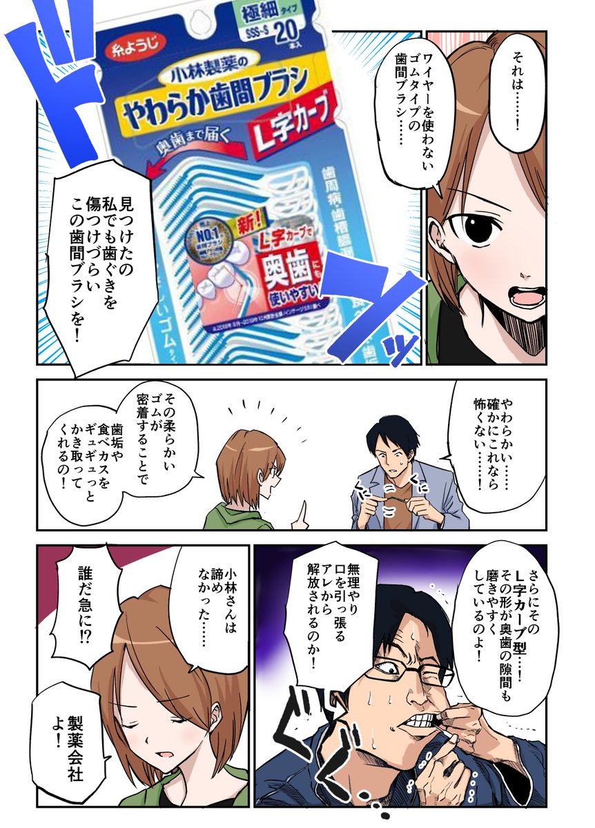 自分に合う歯間ブラシを見つけるマンガを描いてもらいました。 愛知&三重&岐阜【限定発売】です。 #やわらか歯間ブラシ #L字カーブ #小林製薬 kobayashi.co.jp/brand/shikanca…