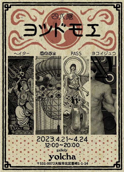 3月になったので情報解禁。 グループ展します👶 やべえ面子だ、楽しみだ。 大阪は中崎町、有形文化財の長屋で行います、絵の展示がメインですが物販もあり〼 4月20〜24日 ぜひ来てください。 @haterproduction @4kuda5rana1 @gune_gune_