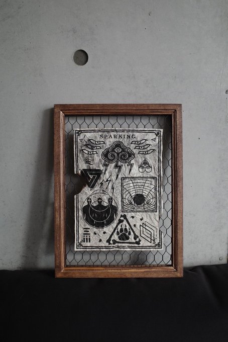21 341 今回の依頼、タトゥーフラッシュ風で額装して納品だったので普通にしてもつまらんから紙染めてくしゃくしゃにして燃やした カワイイ👶 23/04/15 17:53