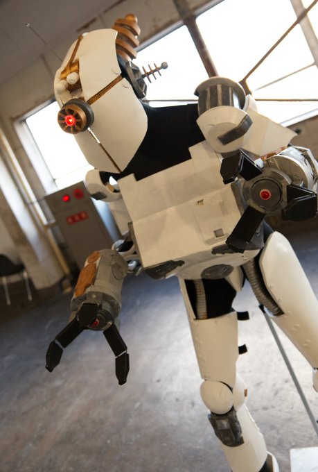 第2次SRCE⑧ Fallout76 ホワイトスプリング・アサルトロン 猫饅さん@nekomanjuhompo こちらも初見となるゲームの敵キャラ プレイヤーを苦しめる頭部レーザーと華奢なボディの人型への調整と、バランスの苦労を思うと・・・。 #スーパーロボコス大展 #superrobocosexpo