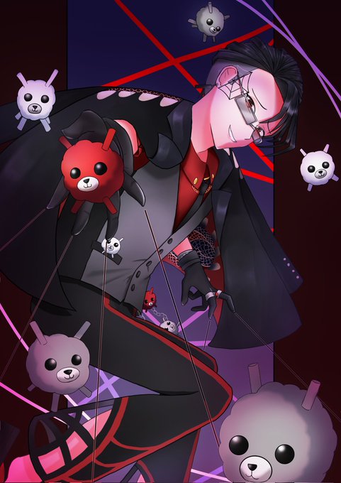 #黒髪スーツメガネで独占欲が強い天然人懐っこい変態であみぐるみ作りが趣味の極悪非道の若頭 #コンパスお絵描き 「プレゼントです、お受け取りください」
