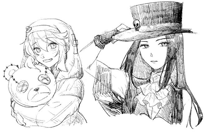 #今月描いた絵を晒そう 決め難しい笑 三枚しか ジャックちゃん多いな ブリジットのは未完成ですけどね…途中でPCが死んだからね…(泣) 早く新しいPC買って元のデータを転移したいっすね…🥲