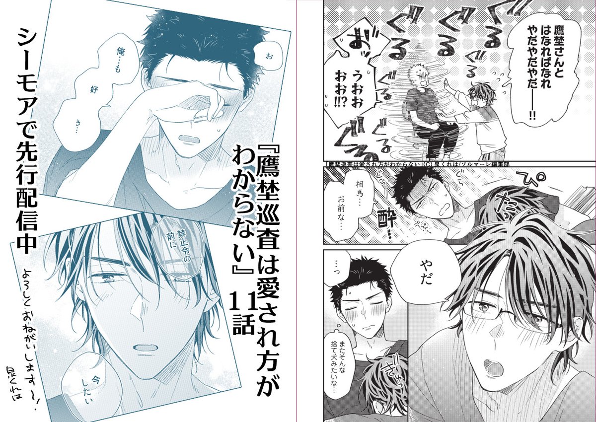 『鷹埜巡査は愛され方がわからない』11話 コミックシーモアで先行配信中です✨ ➡️cmoa.jp/title/227553/v… 7/21まで1・2話無料なので会員以外の方もお試し読みだけでも宜しければ~🙇♀️ (シーモア以外の書店さんは7/14に10話配信予定) #商業BL
