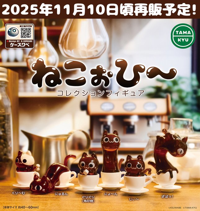 【告知】カプセルフィギュア「ねこぉひ~」は2025年11月10日頃より再販予定です!よろしくお願いします! #ねこぉひー