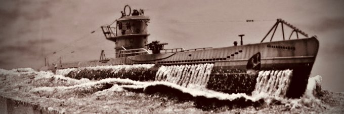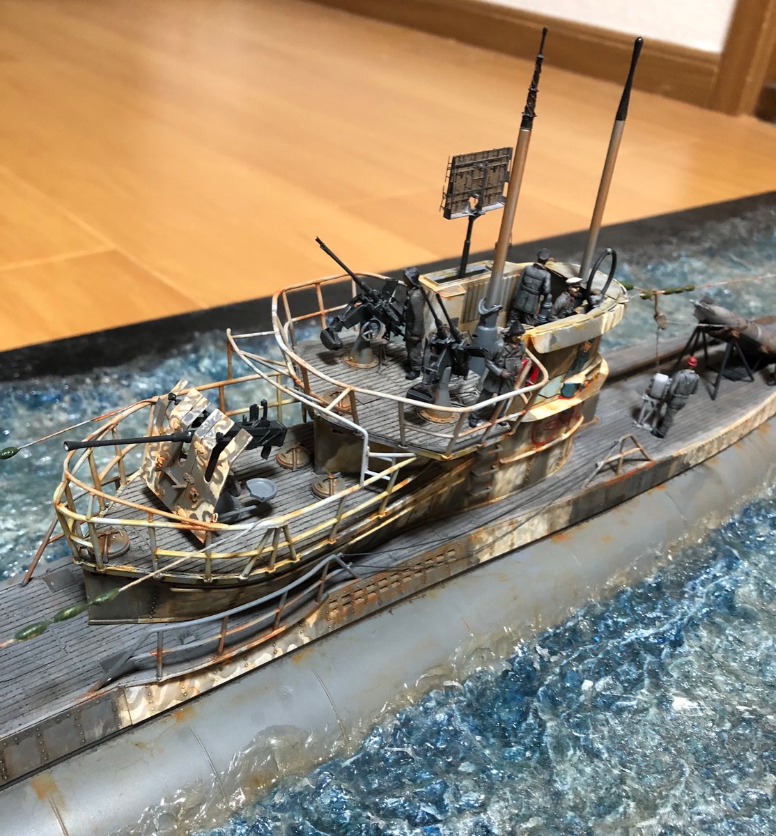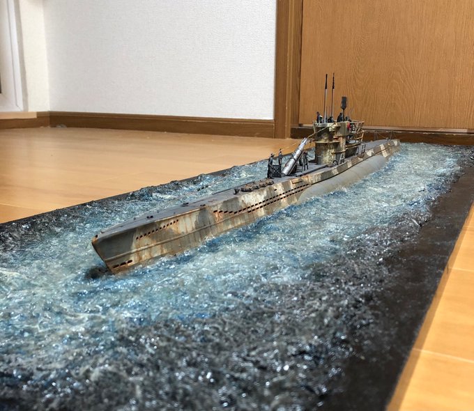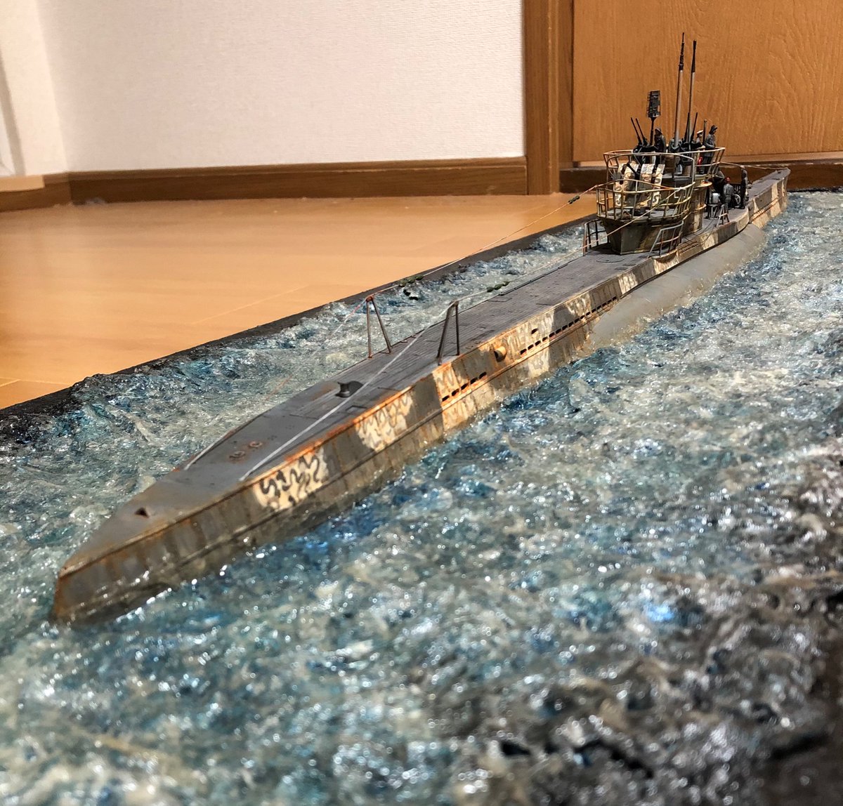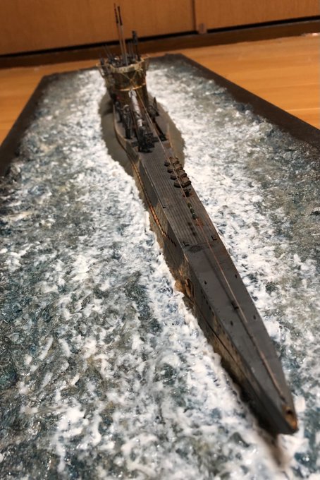 1/72 UボートⅦC/41”U-997” こちらも久しぶりに眺めております。 腹這いになってローアングルで見るのが良いです。 ジェルメディウムが乾燥して白波が消えてしまったので、アップデートしようと思います。