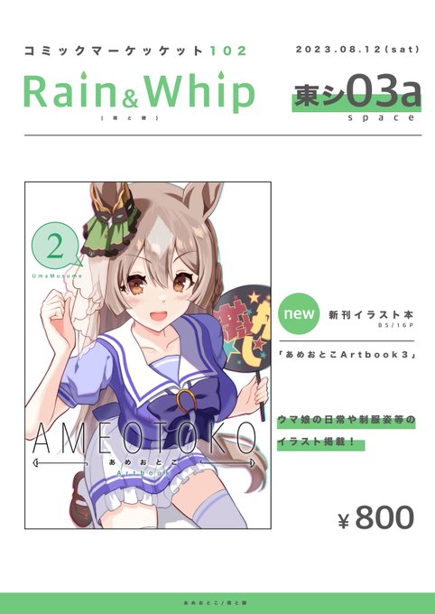 あなたのサークル「雨と鞭」は、コミックマーケット102で「土曜日 東地区 “シ” ブロック 03a」に配置されました!コミケWebカタログにてサークル情報ページ公開中です! webcatalog.circle.ms/Circle/Map/173… #C102WebCatalog 初コミケです! 当日はよろしくお願い致します!