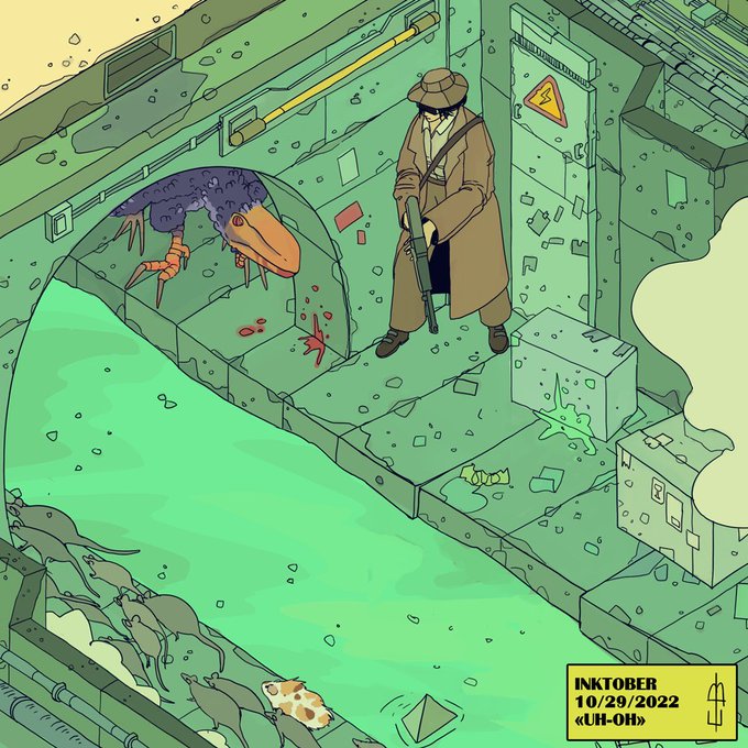 Some bad encounter in the sewers. Starring Carmen Flores from @momentum_games_ . #inktober #inktober2022