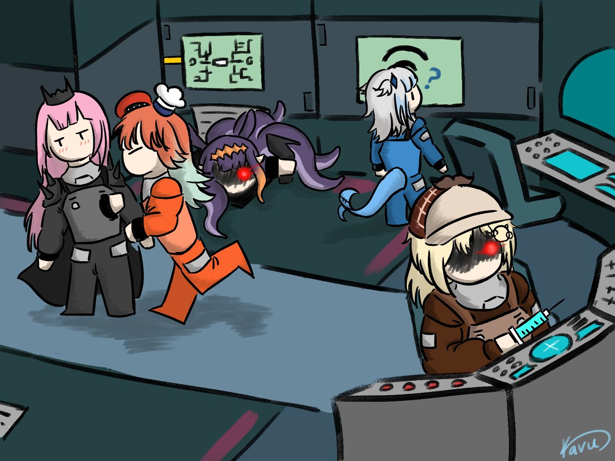 My friend and I had a chat about how fun it would be if the Hololive EN crew decided to play Among Us and this is the result-- #holoMyth #HololiveEN #fanart #callilust #kfp #inART #gawrt #ameliaRT