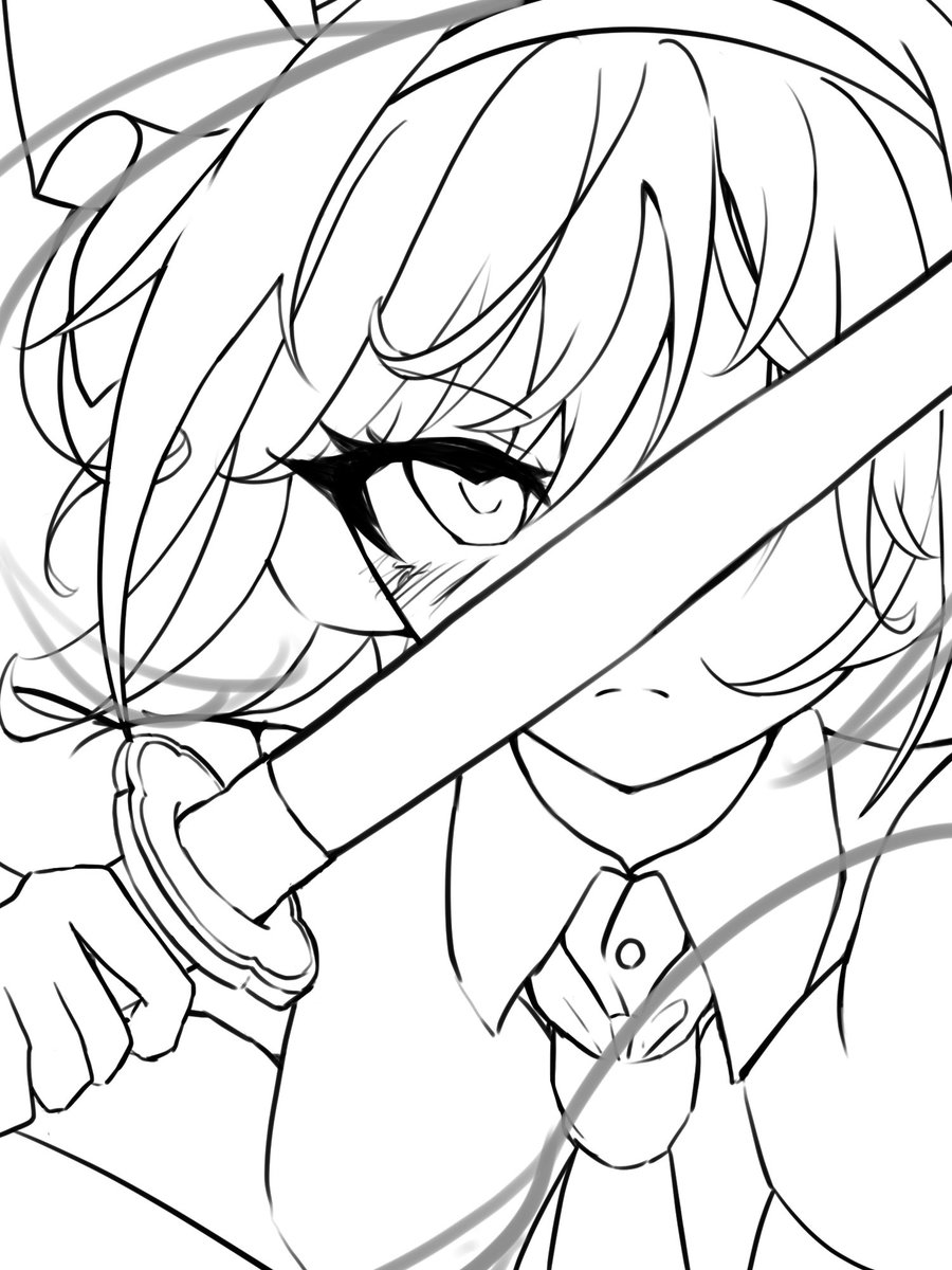 妖夢線画完成ー! 思ったより時間かかっちまった…… #東方Project #魂魄妖夢 #イラスト