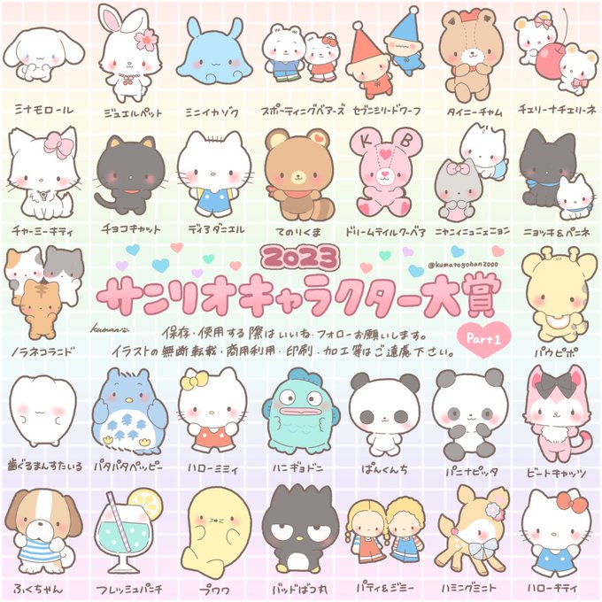 🎀サンリオキャラクター大賞🎀 エントリーキャラクターPart1です💕 リプ欄に単体イラスト載せているので良かったら、推し活に使って下さい✊🏻💕💕 Part2とPart3も投稿するのでお楽しみに🥰 #サンリオキャラクター大賞 #イラスト #サンリオキャラクター大賞2023