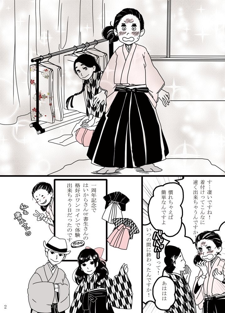 <1/2> 何年か前に描いた、神戸にある「はいからさん神戸」という着物レンタルショップさんの体験レポです🥳 わたしが着物を好きになったキッカケの一つになったお店😊 #漫画が読めるハッシュタグ #はいからさん神戸 #神戸 #レポート漫画