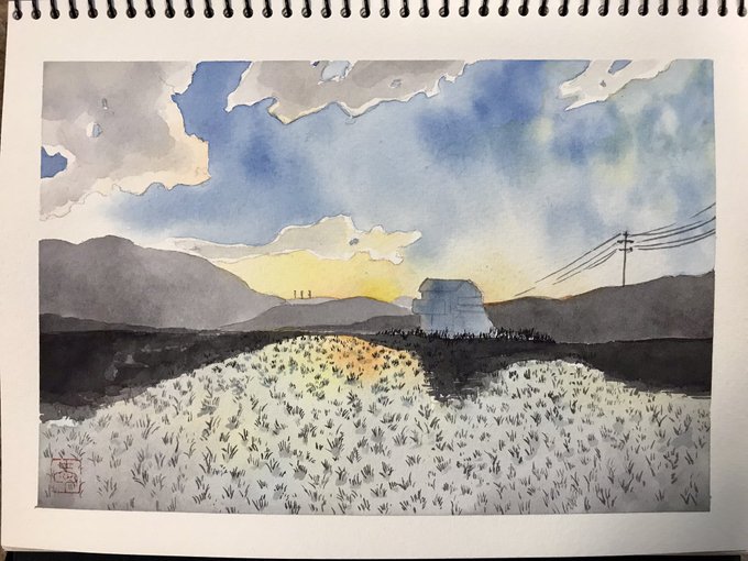 「今日が終わる」 #透明水彩 #watercolor