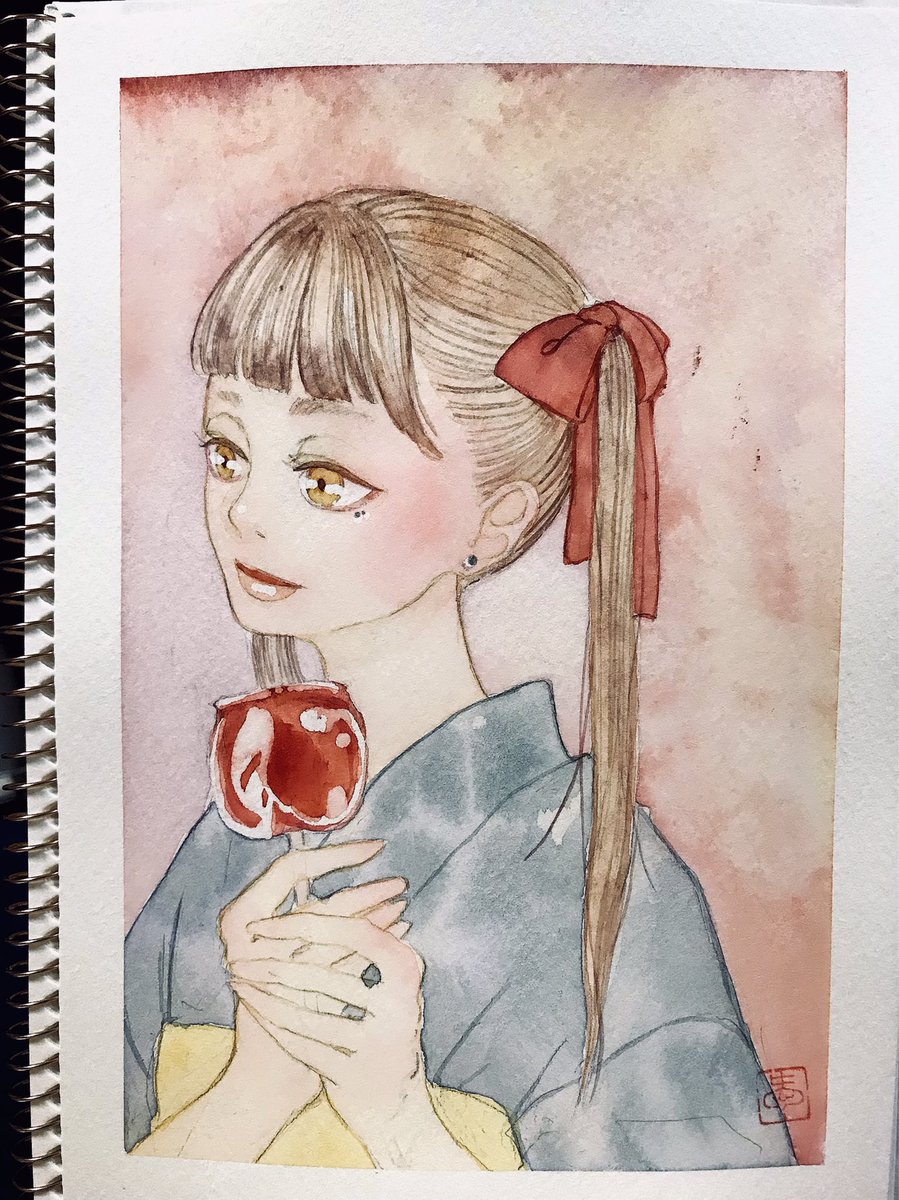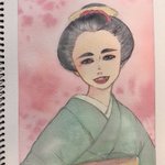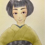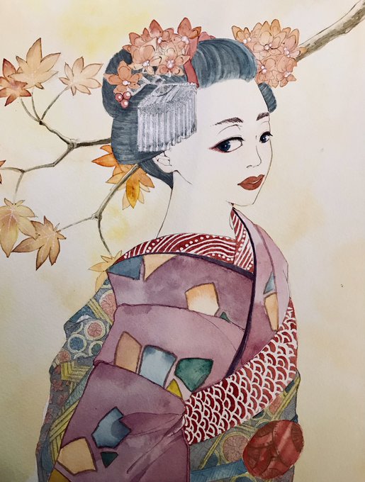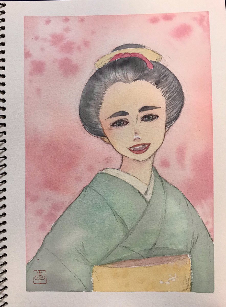 にっこりにっこり😊 #透明水彩 #Watercolor #着物 #日本髪