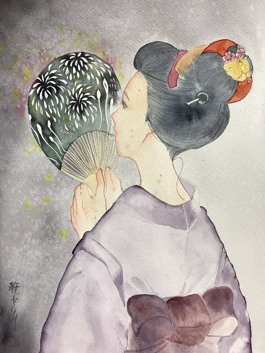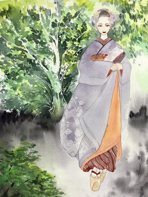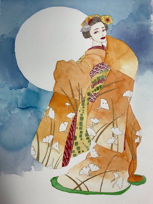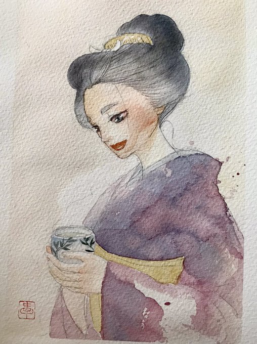 香りに誘われて #透明水彩 #Watercolor #着物 #日本髪
