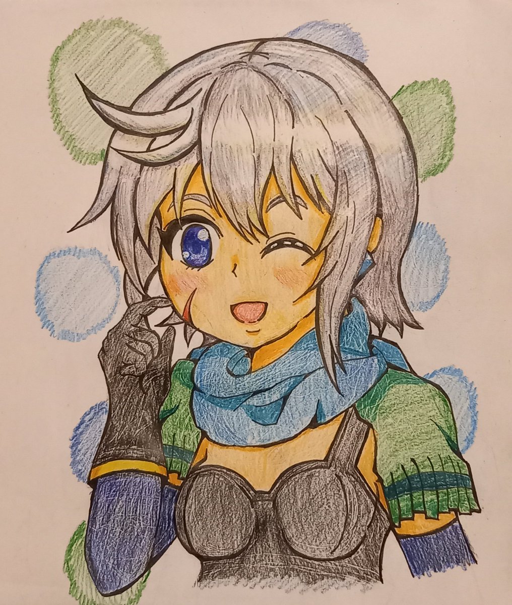 えへへへ〜なクリスを描きました! このすばの中でもダントツで好きなキャラ!(エリスも) 三嶋くろね先生の画集を見ながら描きました! あと運営さん、水着エリス、しかも星4をありがとうございます! #このファンイラストコンテスト