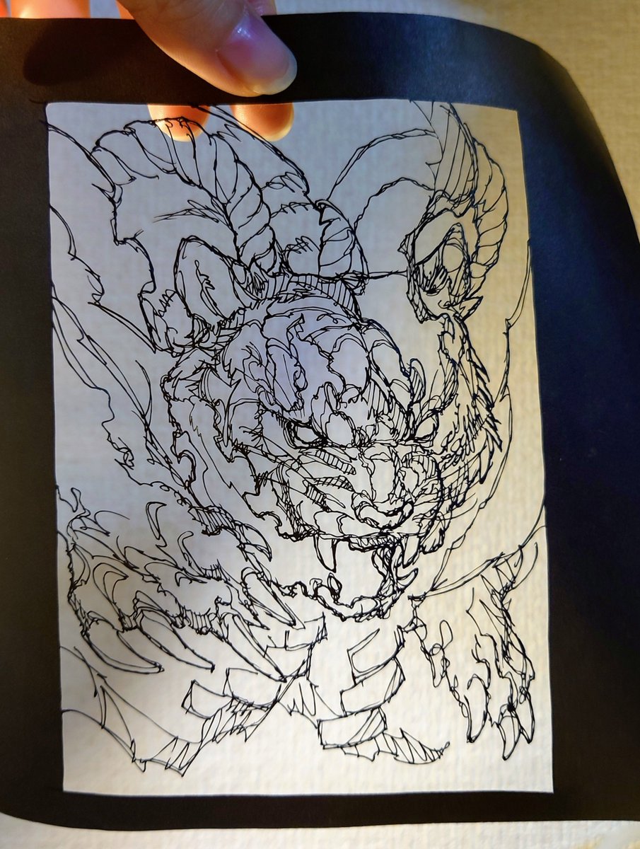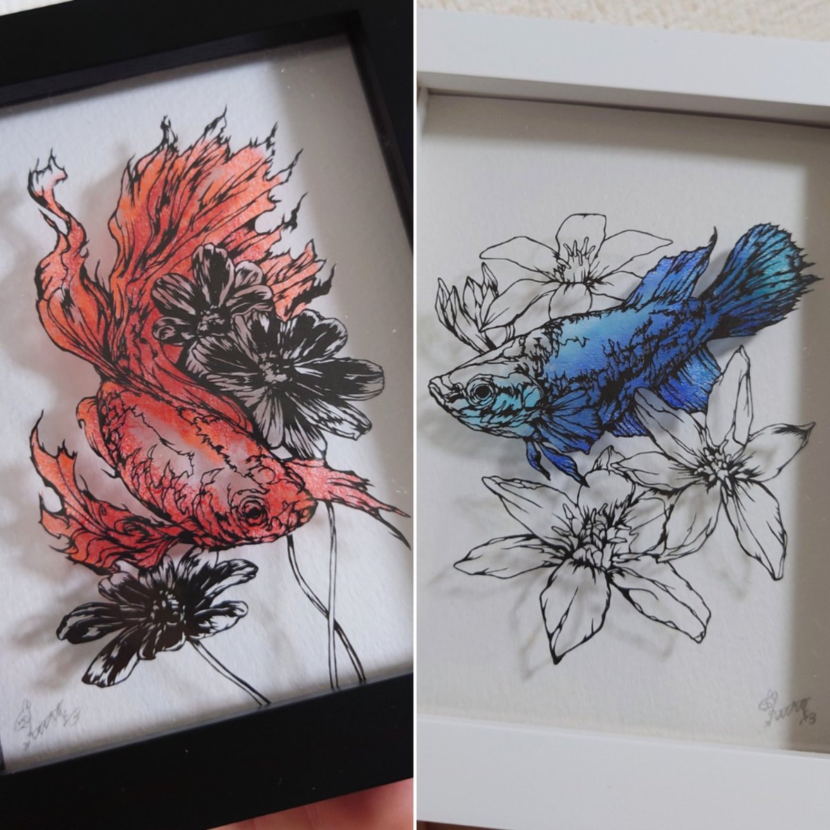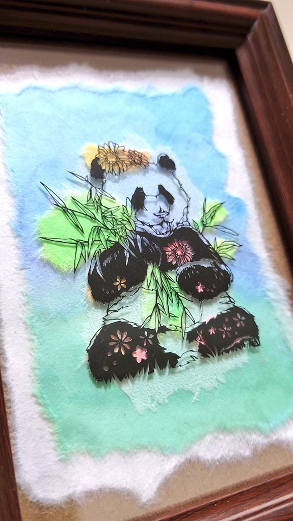 ☆ #濃黒切り絵選抜展 出展作品 ☆ 今回のメイン作品『燦々』の他に、以下のいきもの切り絵4点を出展しております。詳しくは代替テキストにて。 手描き感の残る下絵の「荒(粗)さ」と、それをカッター1本で忠実に切り取る「細かさ」、相反する2つの要素の共存を目指しています。 #切り絵 twitter.com/KURO_I_mori3/s…
