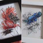 からふるトリチャンず ミニ切り絵、4作品完成しました! ・赤(ショウジョウコウカンチョウ) ・黄(キビタキ) ・緑(ワカケホンセイインコ) ・青(インドクジャク) #黄金ノ時展 / #真昼間すぎの展覧会 にて販売します(ひとつ4000円) #切り絵 #ゴールデンウィークSNS展覧会2022 タグお借りします