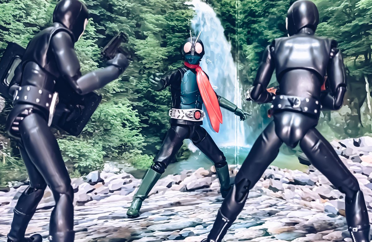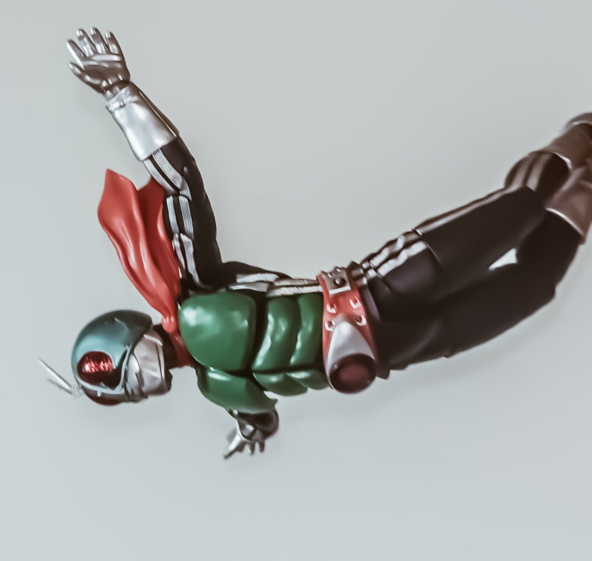 #夜のフィギュア撮影会 テーマ『変身』 本郷猛「来たな!?ショッカー!行くぞッ!!」 ナレーション「改造人間・本郷猛は、ベルトの風車に風圧を受けると『仮面ライダー』に変身するのだ」 ※あえて今回は新1号で旧変身シーンをしてみましたw