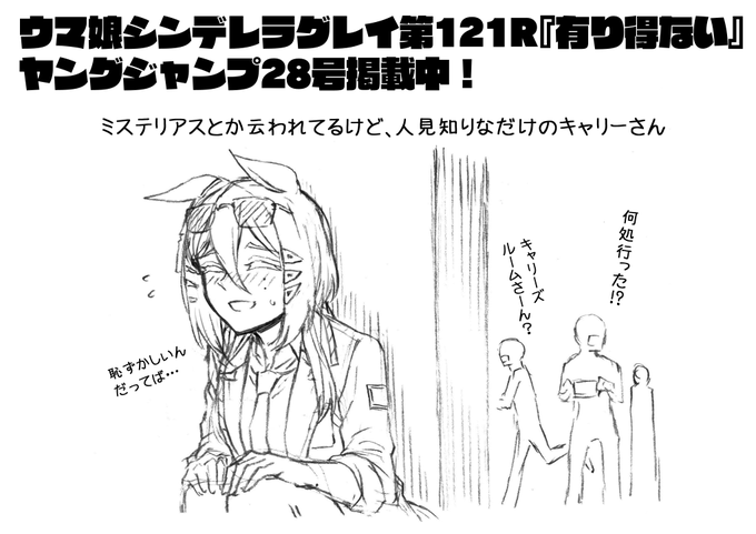 本日発売ヤングジャンプ45号にて ウマ娘シンデレラグレイ第134話掲載中! ynjn.jp/app/title/1180 シービーさん 1番くじでは出なかったけど 本編では出ます 僕は今週号を小脇に抱え、今一度ファミマへ向かう