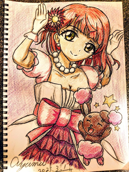 ちぃちゃん、誕生日おめでとう🎂🎉 ラブライブ推し四天王の1人! 大好きだよー🌏 今回はアナログ絵です🎨 丸が好きなちぃちゃんにちなんでマルマインを添えて、ちょいワルな感じにしてみました⚡ #嵐千砂都生誕祭2023 #嵐千砂都誕生祭2023 #ポケライブ