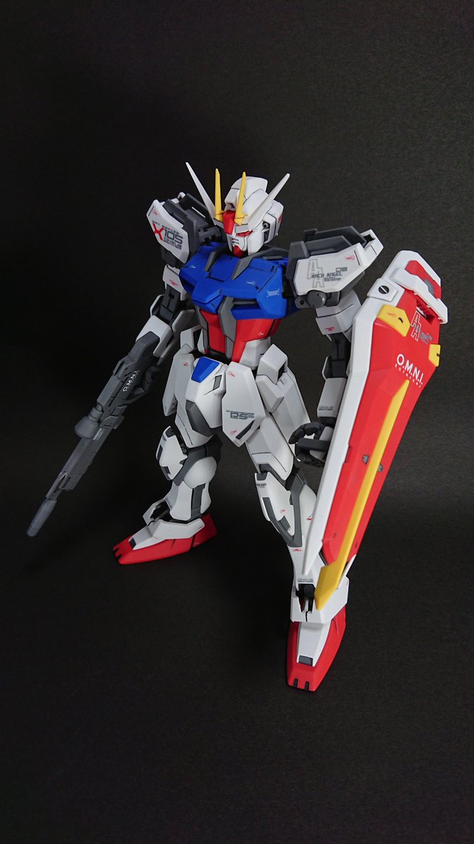 生スト続き。 ビームライフルとシールドを持たせると連ザを思い出させるスタイルになるね。そして生ストに欠かせない武装と言えばやっぱりアーマーシュナイダーですよ💡 #ガンプラ #ガンダムSEED #ストライクガンダム