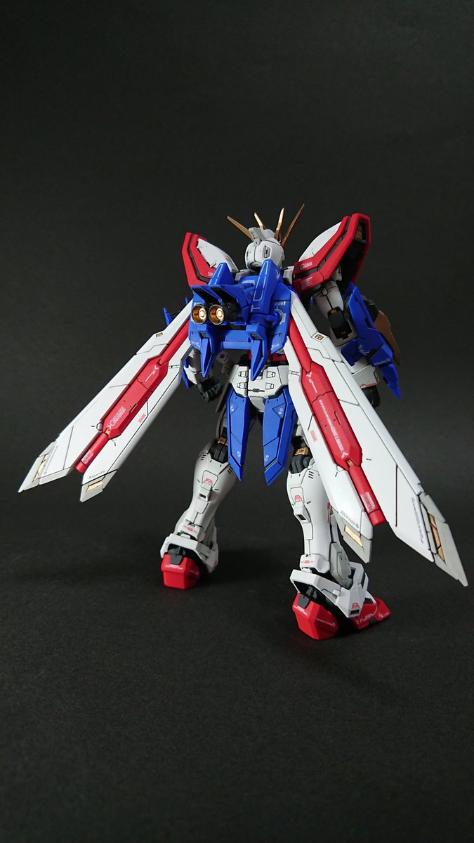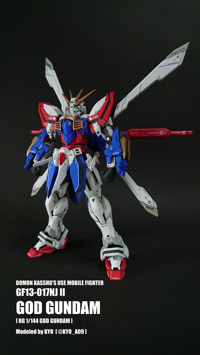 RGゴッドガンダム完成♪ キット自体の出来がほんまに素晴らしいので、今回は表面処理と全塗装のみの仕上げです。 #ゴッドガンダム #ガンプラ