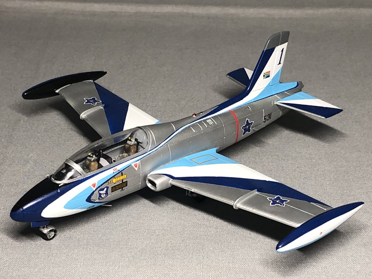 #今月作ったプラモ晒そうぜ 今月は完成品有りました~うれし 1/72 Atlas Impala Mk.1 南ア空軍 デモチーム Silver Falke 所属機(後期塗装スキーム) twitter.com/KYmodelers/sta…
