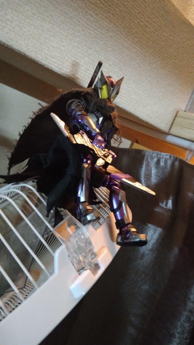 夜に制作(笑) RKFのセイバーを改良(笑) 腰のローブはフェルトを使用 ベルトはガチャでございやす(笑) #仮面ライダーセイバー #RKF #オモ写