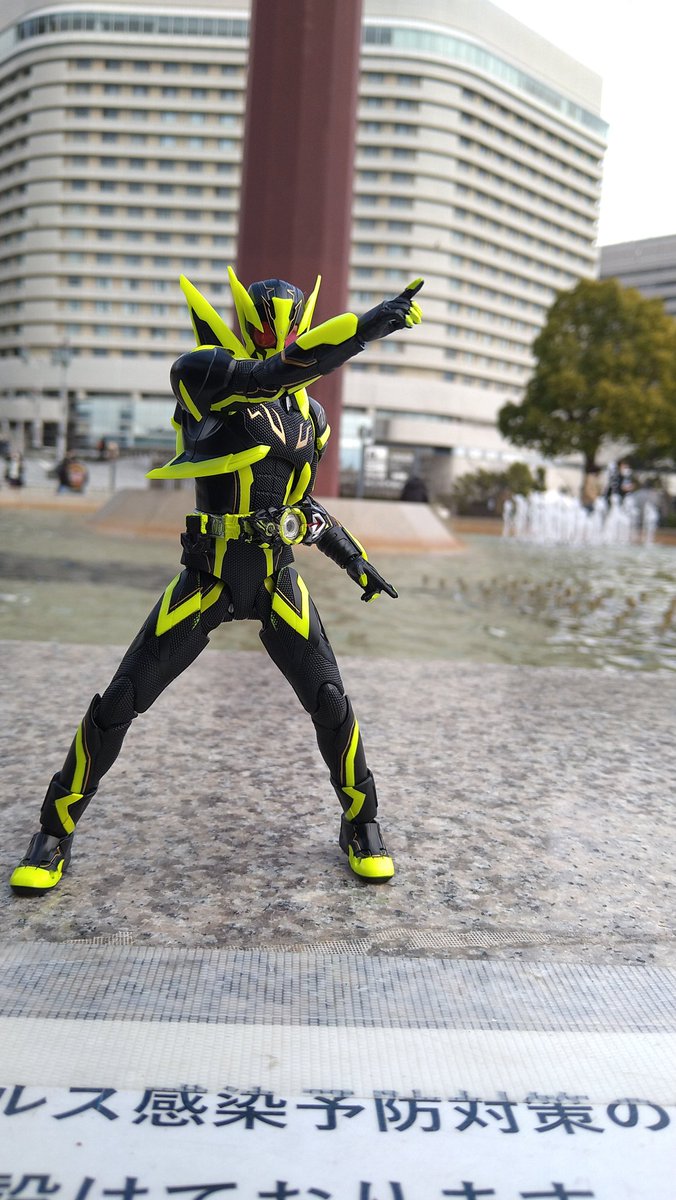 大阪城ホール前の噴水前で撮影 何となく特撮感あるよね(笑) #仮面ライダーゼロワン #SHフィギュアーツ #特撮作品 #オモ写