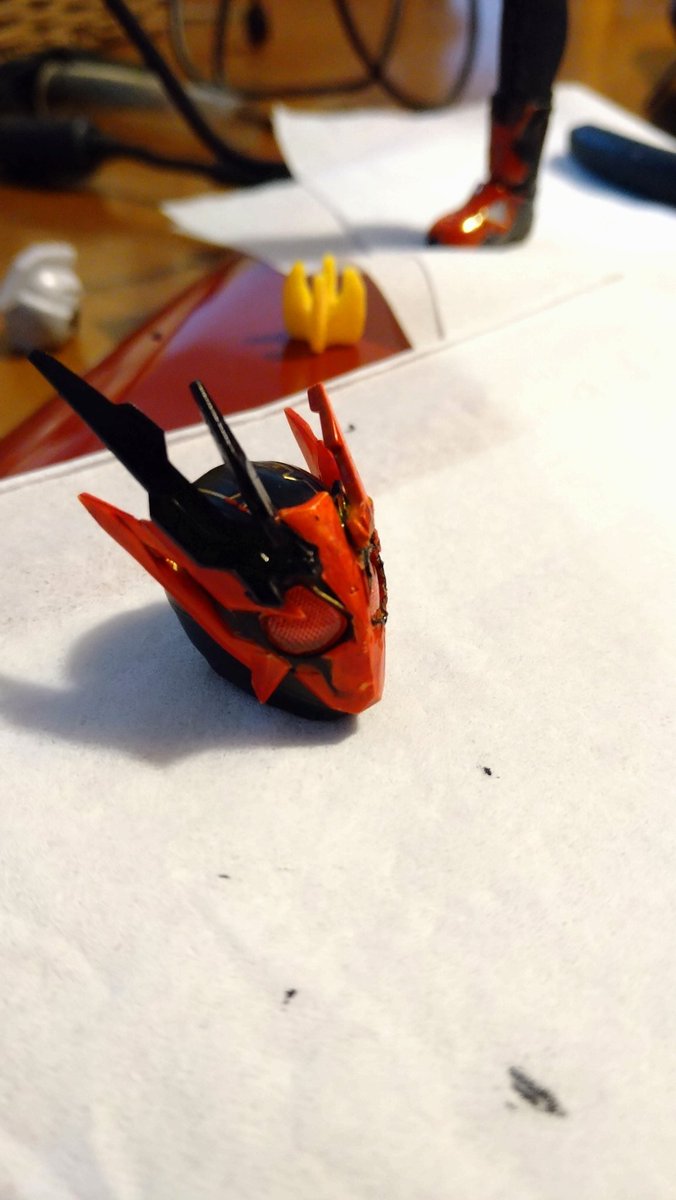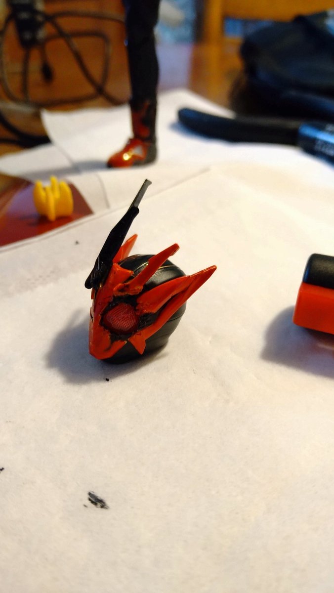 新たに完成! 仮面ライダーアークインフェルノ! アンテナはガンプラから持ってきました(笑) #仮面ライダー #オモ写 #フィギュア改造
