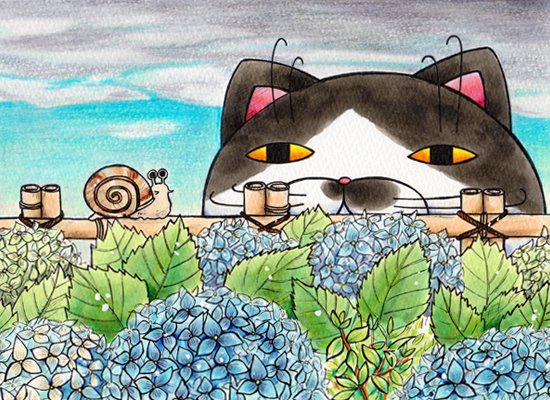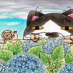 2 21 【アジサイ(A5サイズ、コピック・色鉛筆)2016年】 2017年カレンダー用イラスト。当時催事会場で実演を兼ねてアジサイ部分を描いていたら「ほら、こういう絵の人でもちゃんと描けるんだって」って会話が聞こえてきた一品。今でも褒められたと思ってる。 #原画 #コピック #梅雨入り #アジサイ 21/05/17 11:39