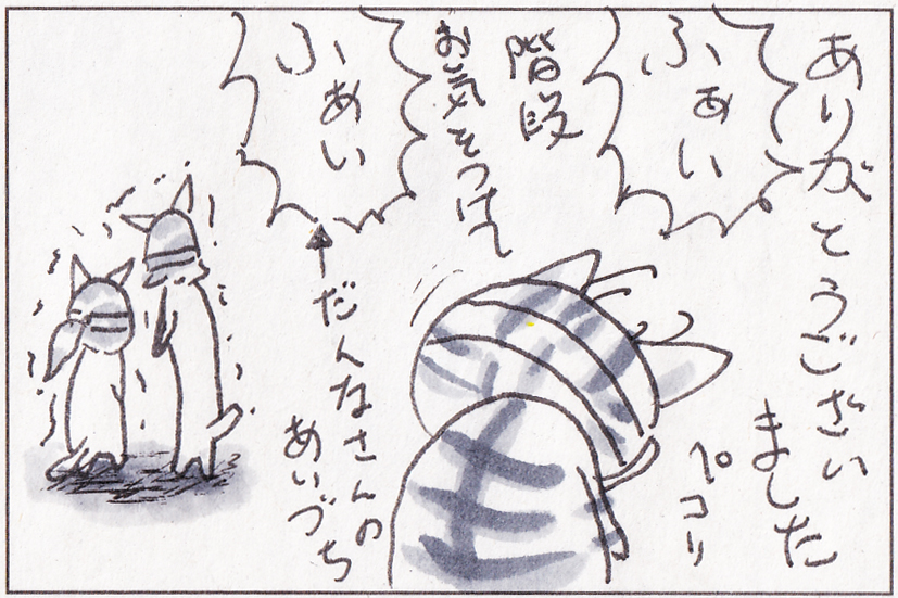 【4コマ漫画】お持ち帰り(2/2) #原画 #コピック #4コマ漫画 #ネコ #猫 #ねこ #大府市 #大府市産業文化まつり #実際はみんなマスクしてます
