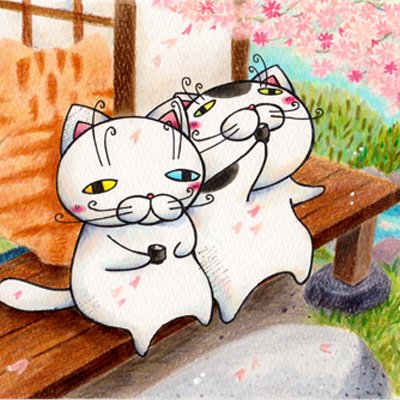 【ベランダ(A5サイズ、コピック・色鉛筆)2016年】 金沢の兼六園内にあるお茶室「時雨亭」がモデル。 作者が「凛として時雨」のファンだから、時雨亭は第一印象で好き。 幽遊白書の時雨も嫌いじゃない。 #猫 #原画 #コピック #シャトンルージュ #桜