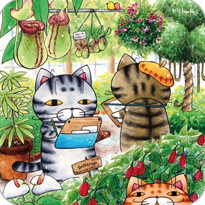 3 23 【ベランダ(200四方ぐらい、コピック・色鉛筆)2020年】 英和出版社様「ジャンボまちがい絵さがしパル」掲載作品。名古屋の東山動植物園に勝手に取材に行って参考にした。同植物園はウツボカズラが好きらしく、割合広めのコーナーがある。 #猫 #原画 #コピック #シャトンルージュ #植物園 21/02/25 14:50