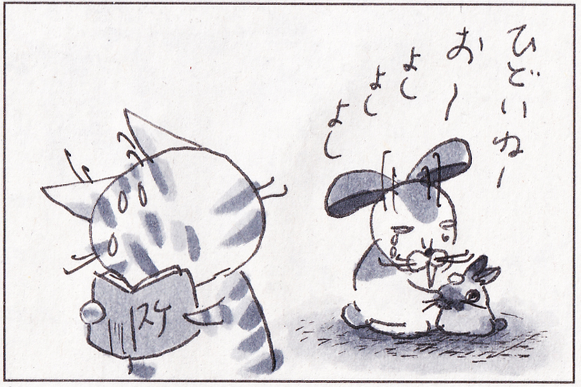 【4コマ漫画】うさぎの触り方 ※おはぎが家に来て間もない頃の話 #原画 #コピック #4コマ漫画 #ネコ #猫 #ねこ #うさぎ #ネザーランドドワーフ