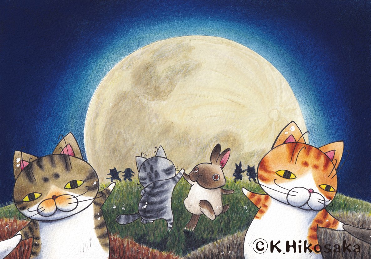 5 39 【十五夜(A5サイズ、コピック他)2022年】 2023年ひこ屋カレンダー9月のイラスト。先に考えた構図が大変過ぎて大きく変更したら、楽だったし返って良くなった。 今夜は十五夜。今のところ東海地方は晴れてるけど、果たして。。。 #十五夜 #原画 #コピック 22/09/10 10:22