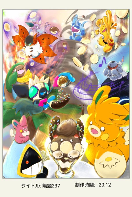 #2022年自分が選ぶ今年の4枚 カービィ編 1枚目:はじめてTwitterに投稿した絵 2枚目:文句なしの神イラスト 3枚目:色彩検定1級1次試験後の絵 4枚目:3枚目からおよそ1ヶ月半ぶりのカービィ