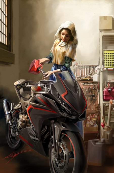 #絵柄が好みっていう人にフォローされたい 昔の名画風バイク絵があってもいい?