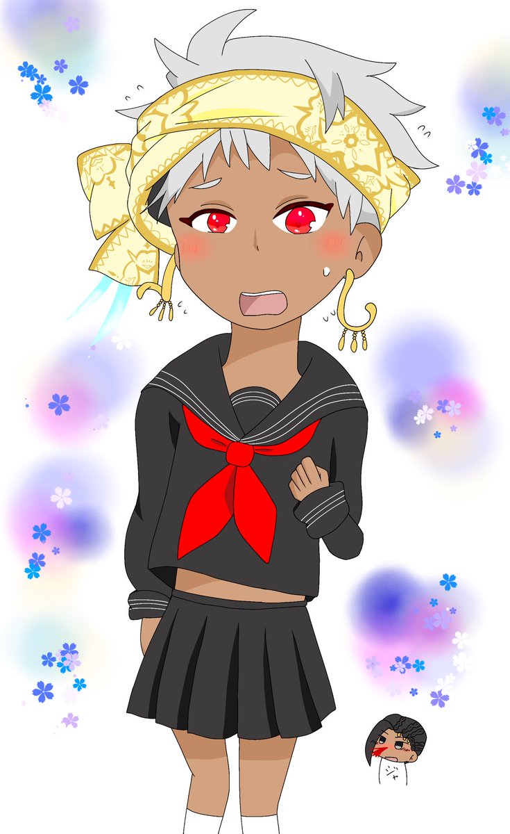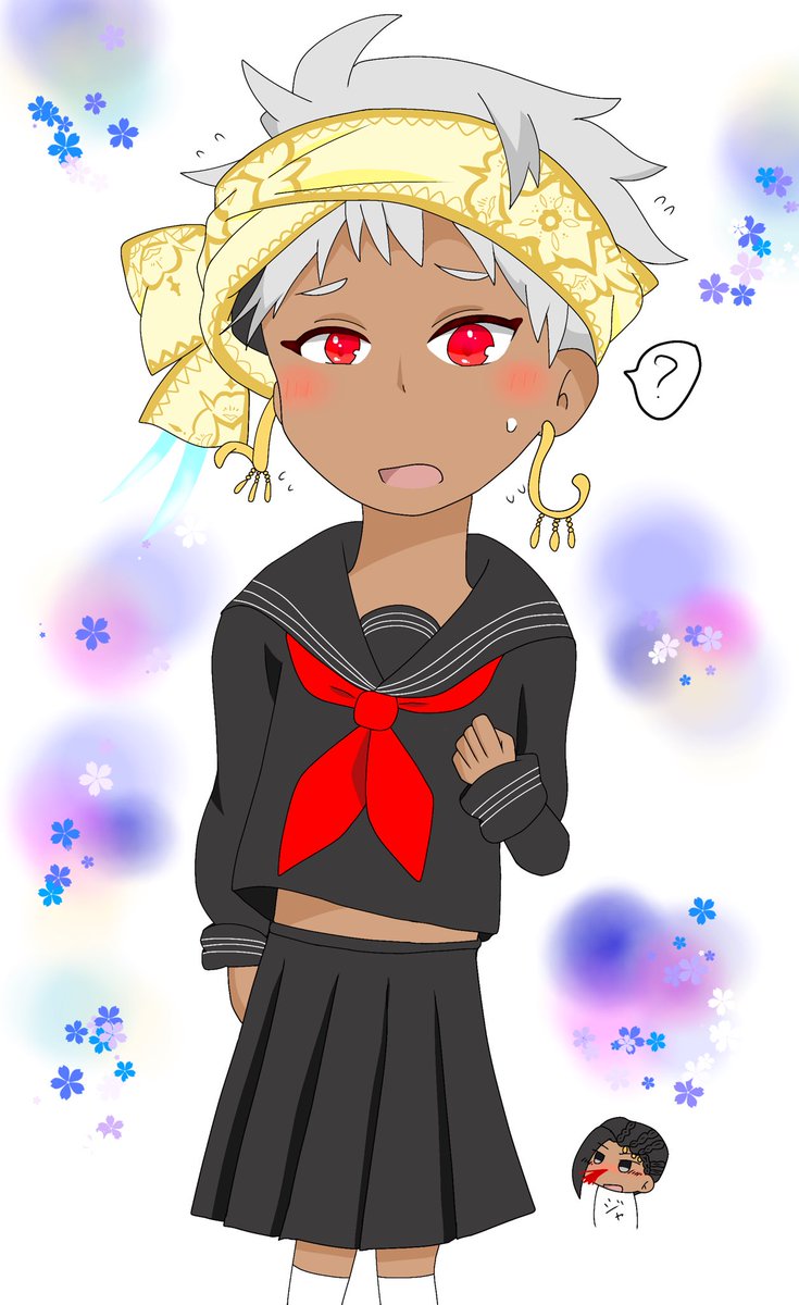 ⚠️女装注意⚠️ 🦦『ジャミルが、着ろ!って…💦』 ロングスカート差分も描きたい…。 あ"ーーー…。ターバン模様付け死んだ。イヤリング修正したいけど指がァ…。(まとも絵じゃないからいっか) #ツイステファンアート