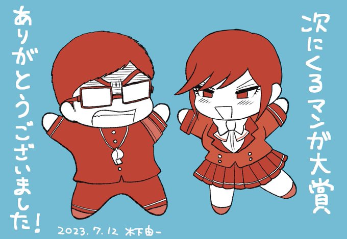 改めまして、次にくるマンガ大賞2023誠にありがとうございました‼️🙏🙇🏻♀️🙇🏻♂️✨おススメしてくださるお言葉、初めてお読みになった方のお言葉、ご投票のお言葉、全てとても励みになりました…🙏😭✨ 引き続き今後の展開も楽しんで頂けたら幸いです❣️👫 7/20発売の⑤巻もどうぞよろしくお願い致します‼️ twitter.com/k__y__/status/…