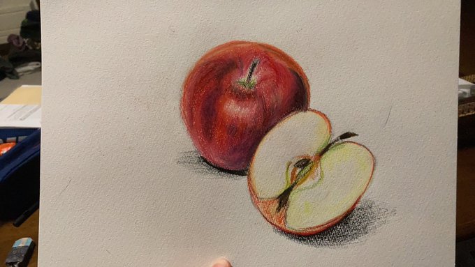 #色鉛筆画 #色鉛筆 #イラスト好きな人と繋がりたい #イラスト #イラスト好きさんと繋がりたい #絵描きさんと繋がたい 色鉛筆画コンテストに出したりんごの絵です! 残念ながら、入賞できませんでした...